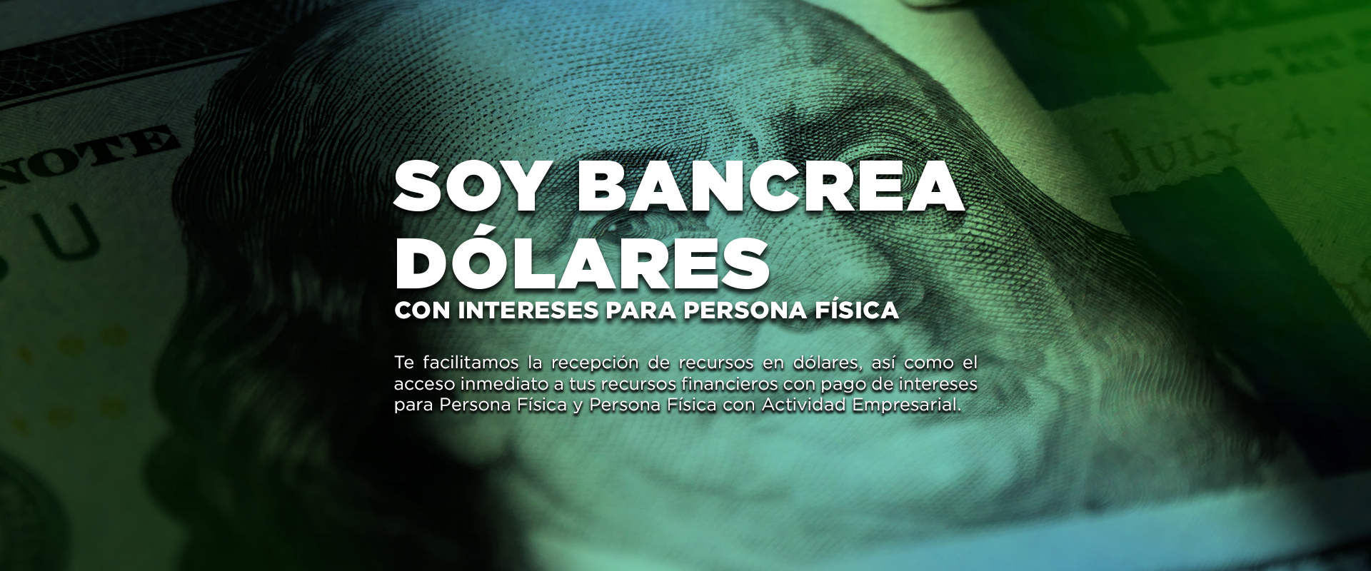 Recepción de depósitos de dinero bancario a la vista en USD.